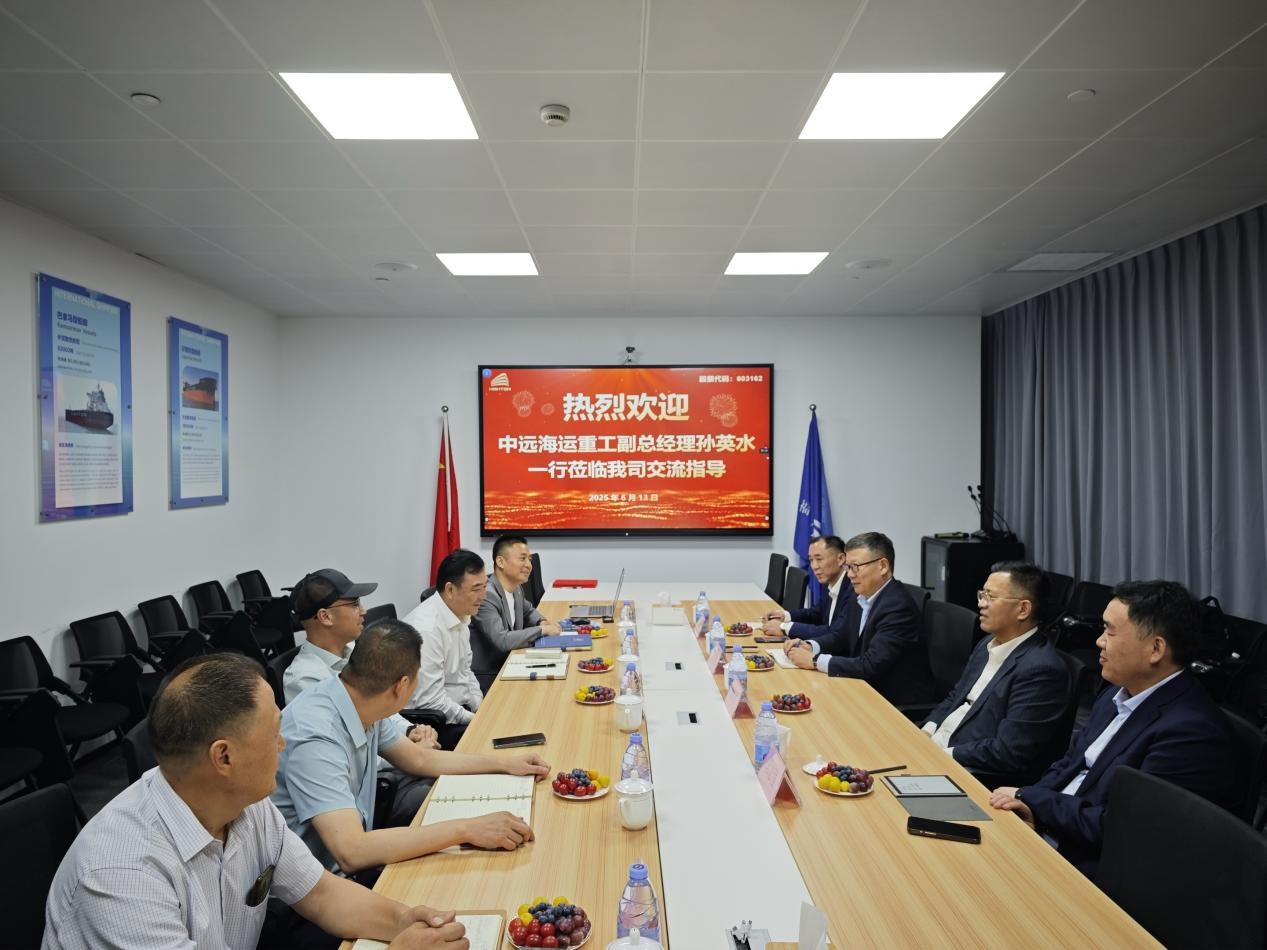 6月13日,中遠(yuǎn)海運重工有限公司副總經(jīng)理孫英水、經(jīng)營中心總經(jīng)理俞健、經(jīng)營中心副總經(jīng)理郭志強(qiáng)、經(jīng)營中心總管孫泉一行到訪海通發(fā)展,雙方就開展戰(zhàn)略合作展開交流。海通發(fā)展董事長曾而斌、船管中心總經(jīng)理梁杰、船管中心副總經(jīng)理董學(xué)海、人資行政中心副總經(jīng)理李磊、機(jī)務(wù)技術(shù)總監(jiān)曹成海等參加。
